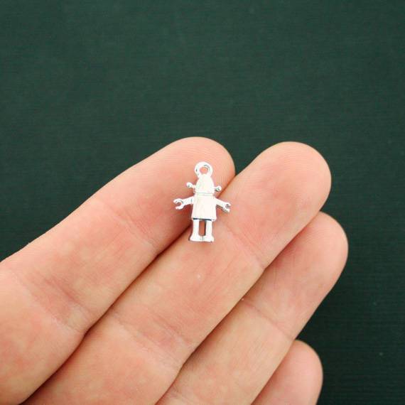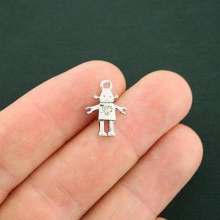 Robot antique silver tone charms with inset rhinestone, in a zinc alloy metal.