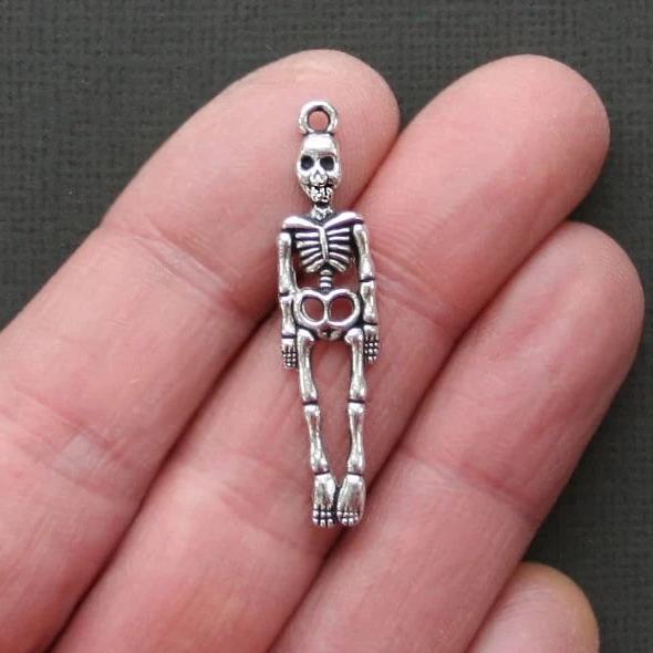 Skeleton antique silver tone charms, in a zinc alloy metal.