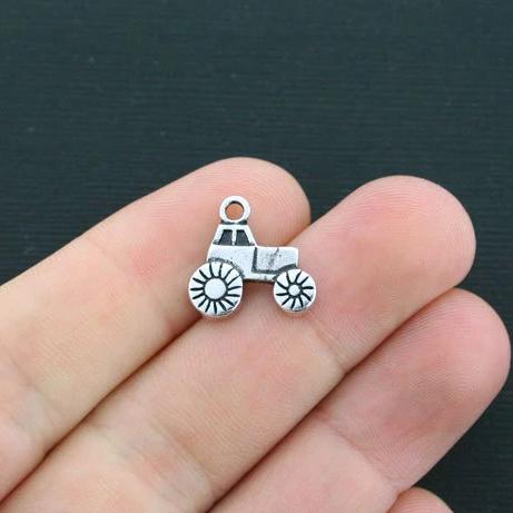 Tractor antique silver tone charms, in a zinc alloy metal.