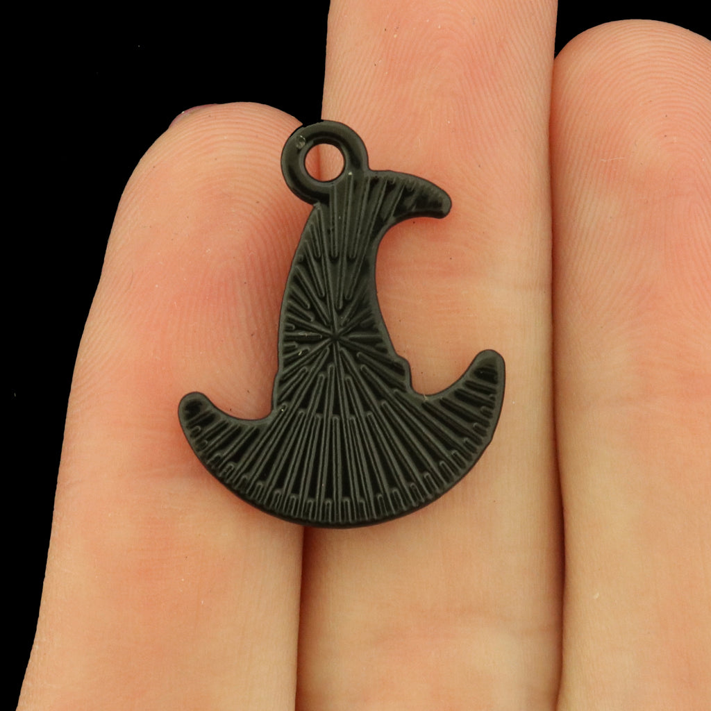 Take a look at these super cute small witch's hat charms.. they are made of silver tone alloy and finished with black and purple enamel.