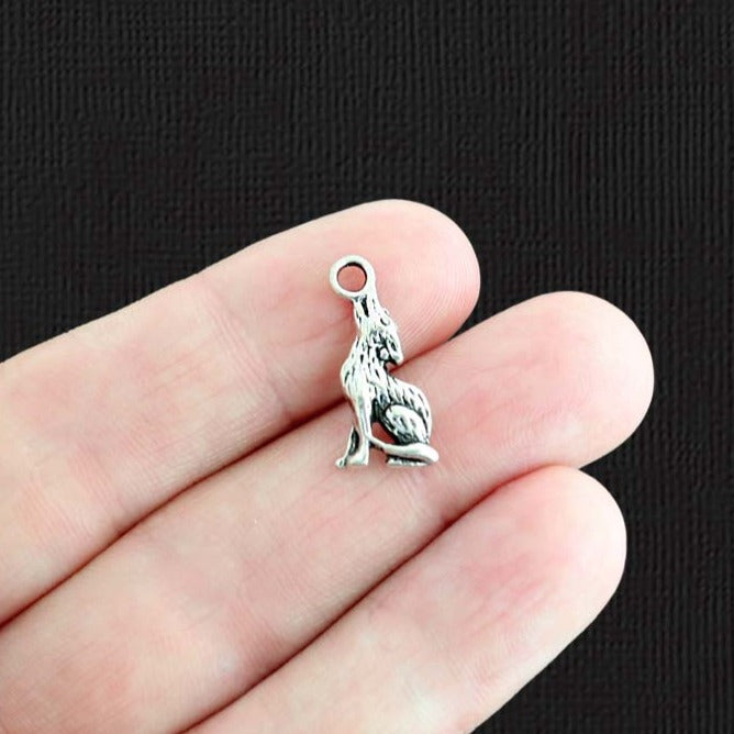 Wolf antique silver tone charms, in a zinc alloy metal.