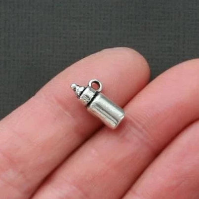 Baby bottle antique silver tone charms, in a zinc alloy metal.
