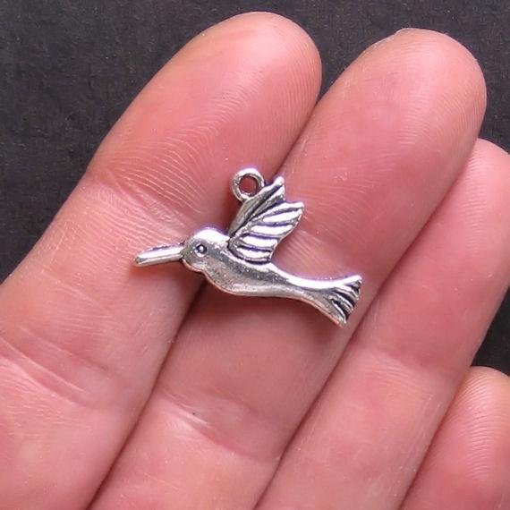 Hummingbird antique silver tone charms, in a zinc alloy metal.