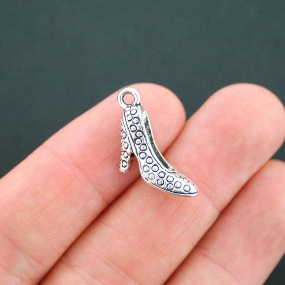 High heel shoe antique silver tone charms, in a zinc alloy metal.