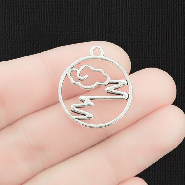 Cloud with lightning bolt antique silver tone charms, in a zinc alloy metal.