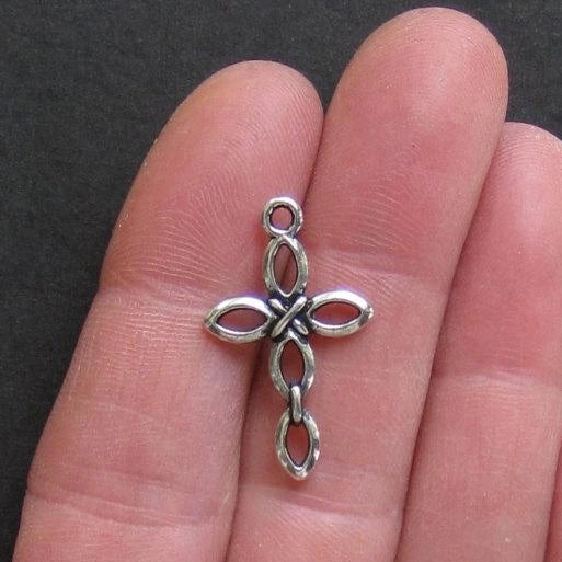 Modern Cross antique silver tone charms, in a zinc alloy metal.