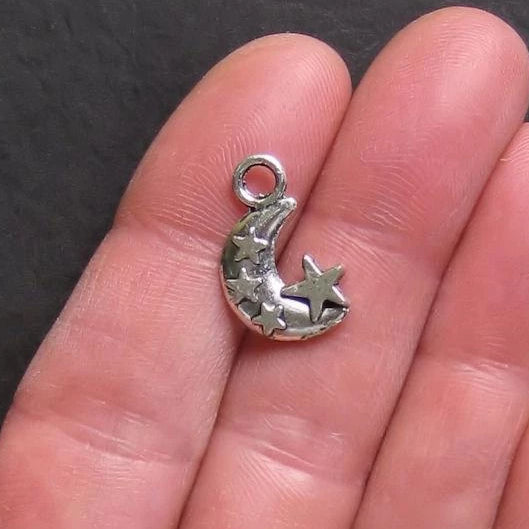 Crescent Moon and Star antique silver tone charms, in a zinc alloy metal.
