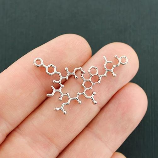 Oxytocin molecule connector silver tone charms, in a zinc alloy metal.