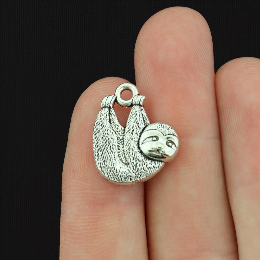 Sloth antique silver tone charms, in a zinc alloy metal.