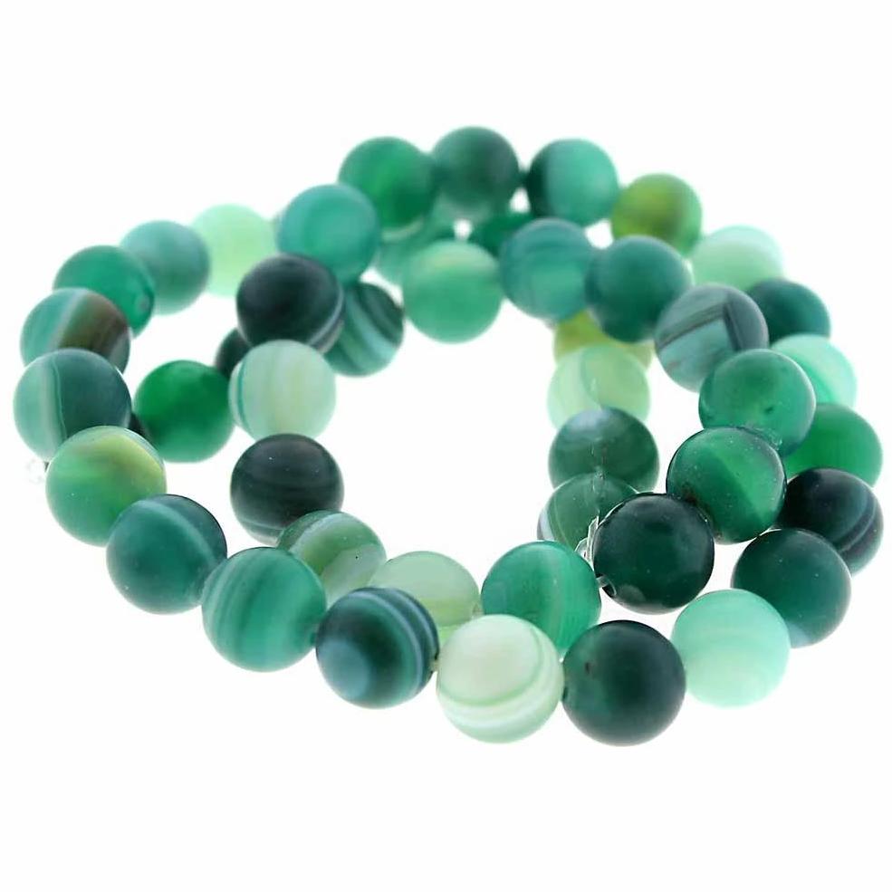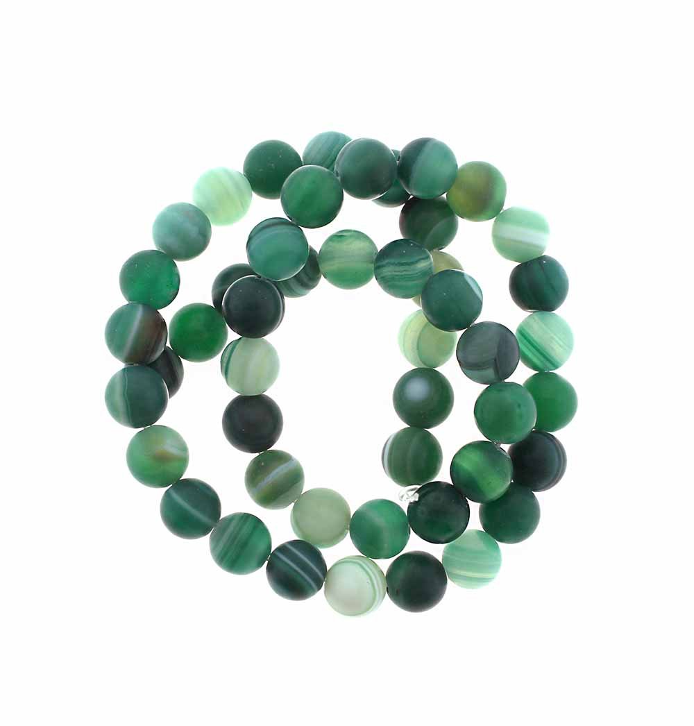Emerald Green natural agate beads in a 8mm round, with a frosted finish.