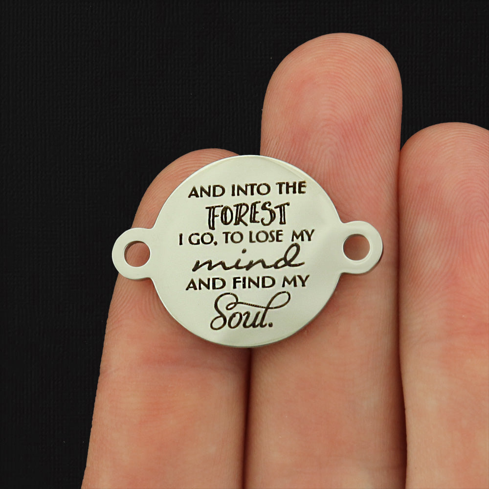 "And into the forest I go, to lose my mind and find my soul." laser engraved stainless steel bracelet round charms, from our exclusive line designed by Bohemian Findings.