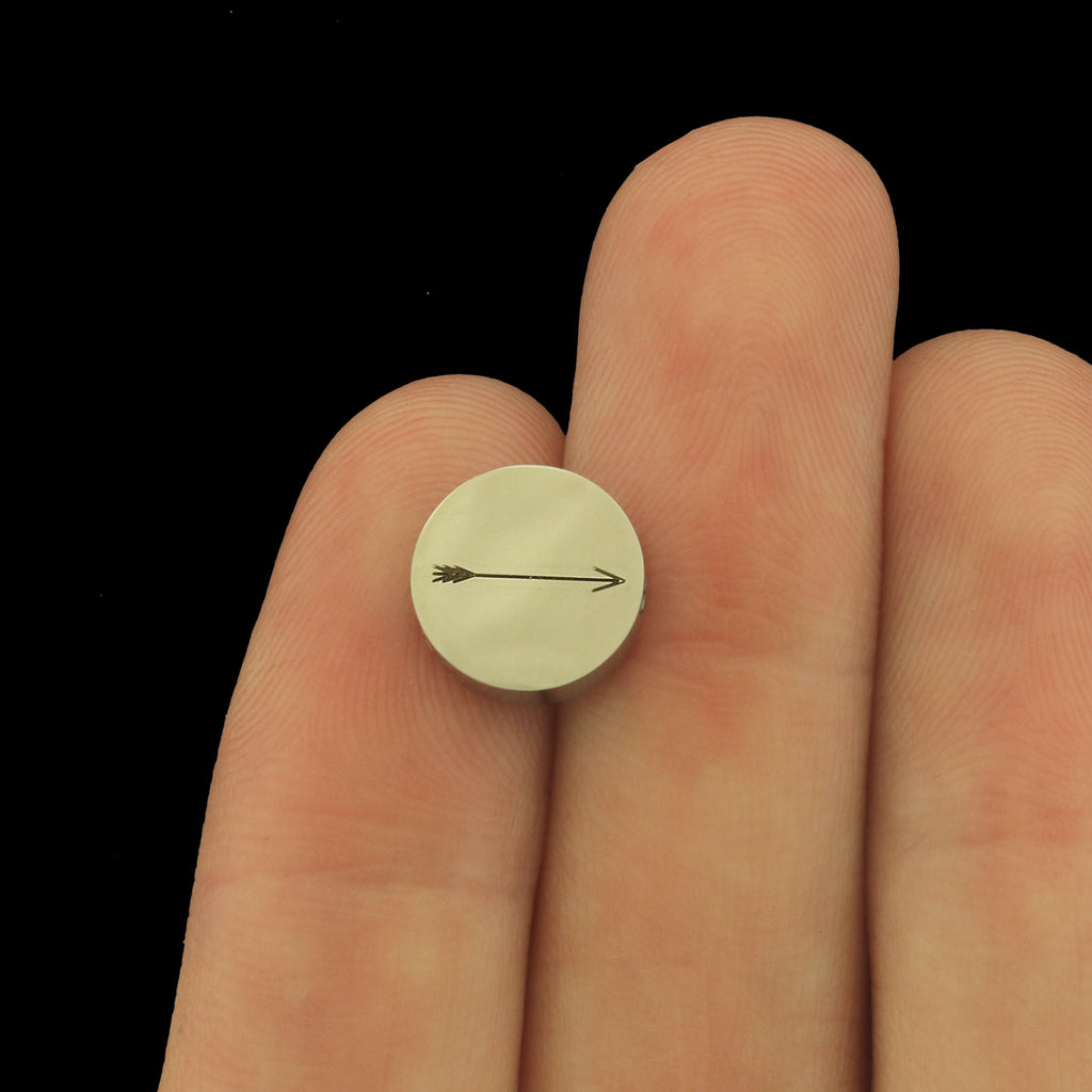 Arrow laser engraved stainless steel beads. Choose from three sizes - 6mm, 8mm, or 10mm! Perfect to add a personalized touch to a beaded bracelet.