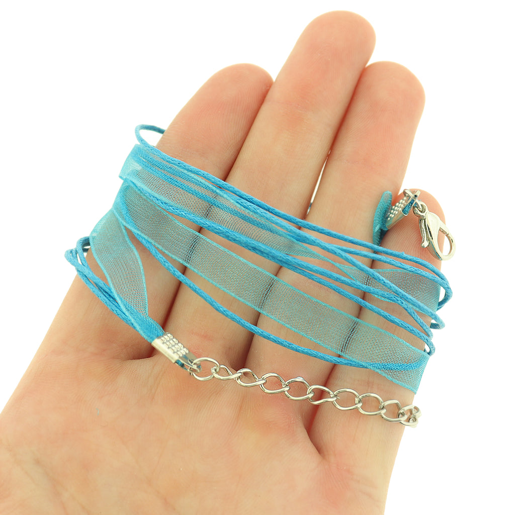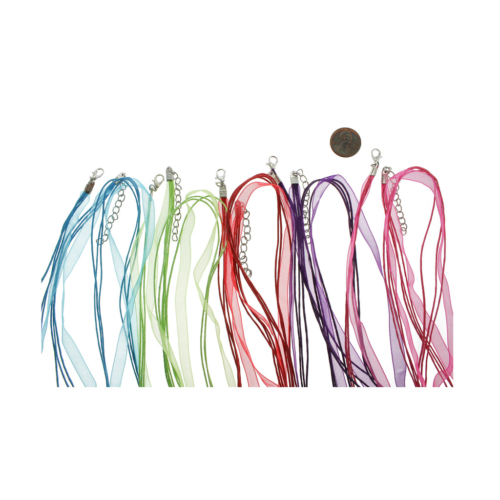 Assorted color organza ribbon necklace with lobster clasp and extender chain in silver tone zinc alloy, the perfect base for your next jewelry creation!
