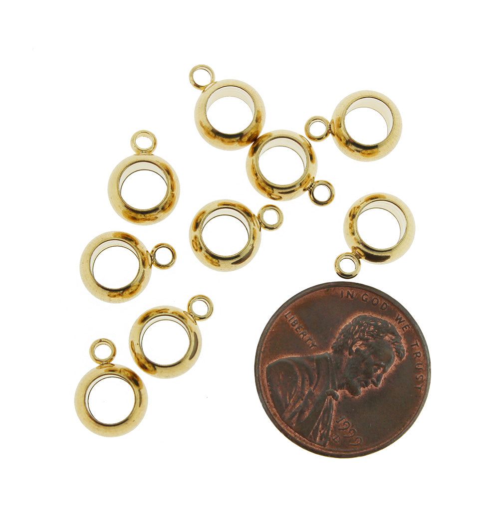 Gold tone stainless steel beads in a 11mm x 8mm bail, with a metallic finish.