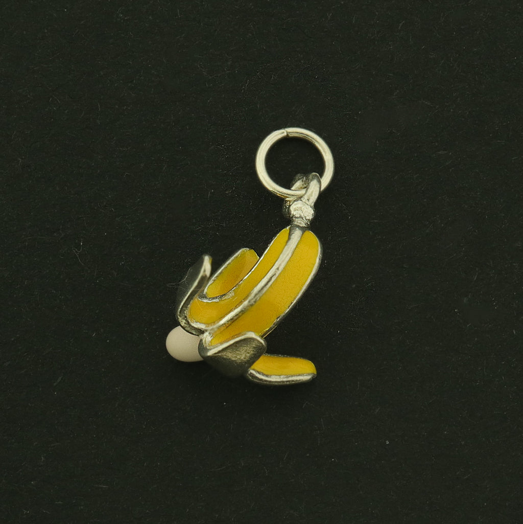 Check out these banana charms, made of 925 sterling silver and finished with enamel. Also includes an attached jump ring... they're super eye catching!