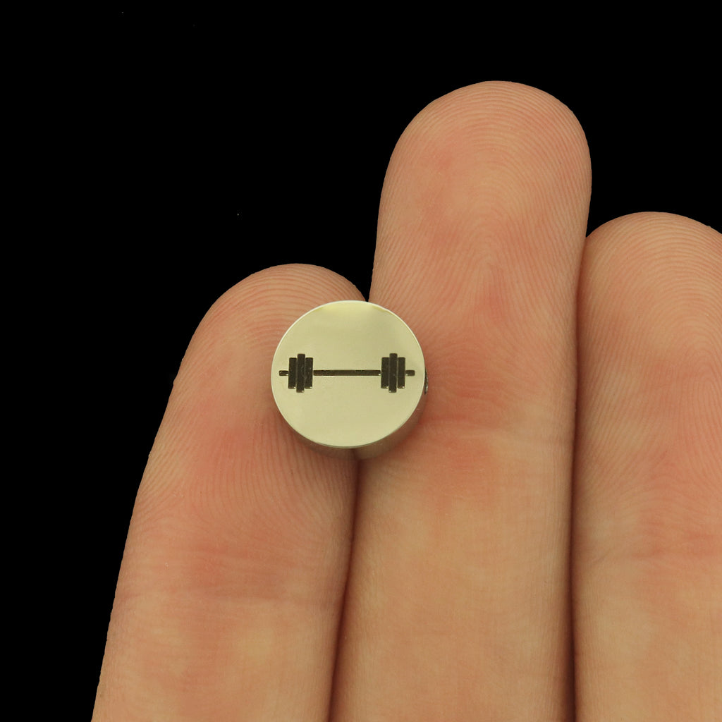Barbell laser engraved stainless steel beads. Choose from three sizes - 6mm, 8mm, or 10mm! Perfect to add a personalized touch to a beaded bracelet.