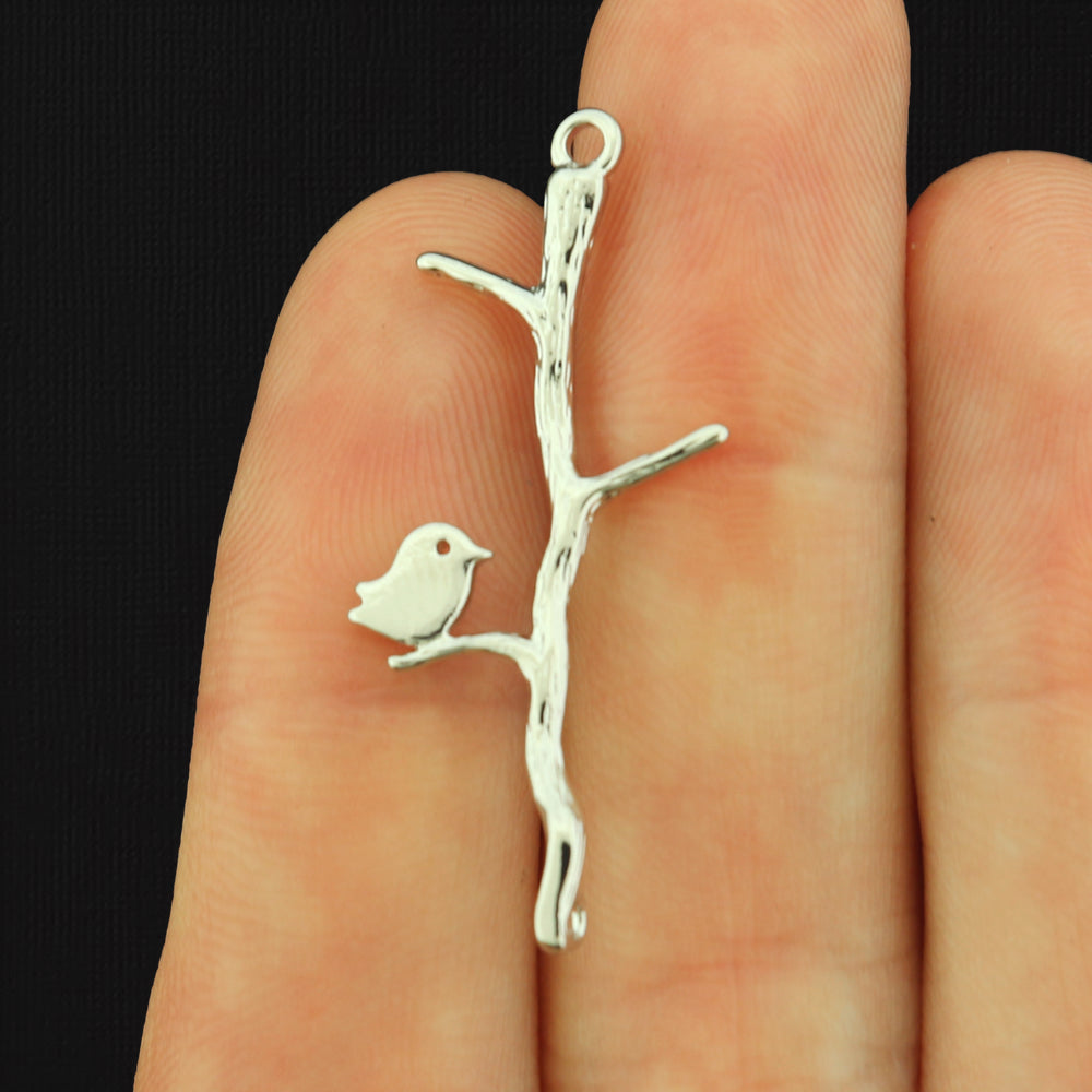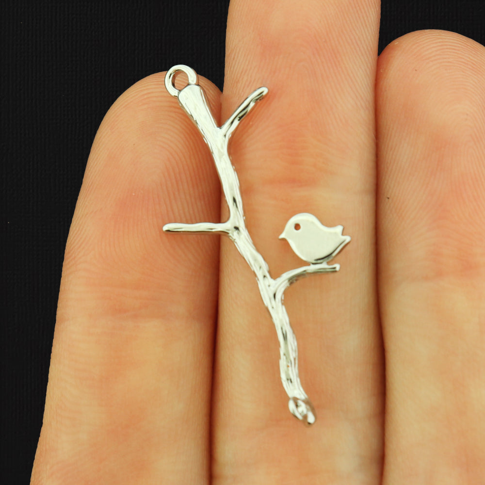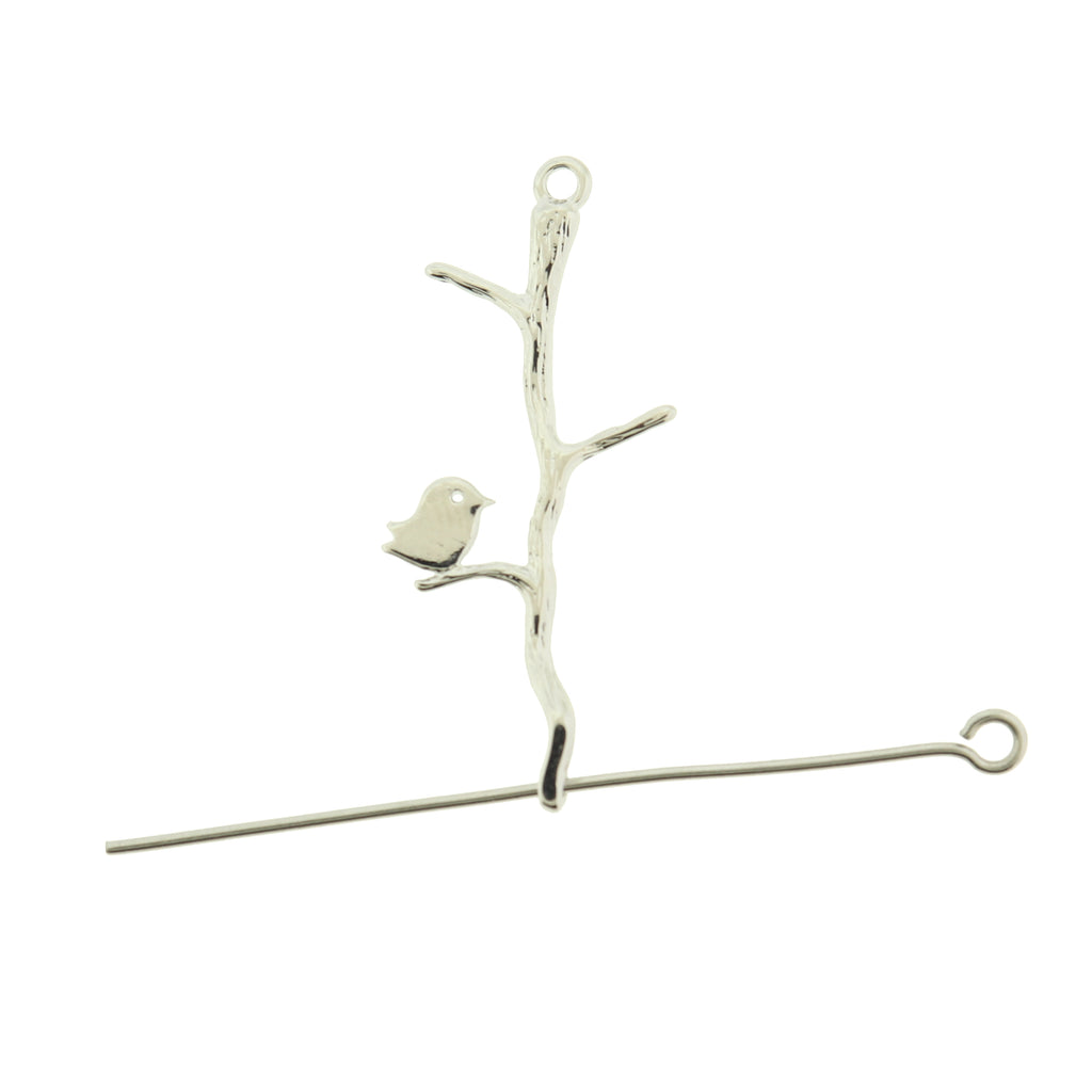 Bird on a branch platnium plated silver tone or real 18K gold tone connector charms, in a plated copper metal.