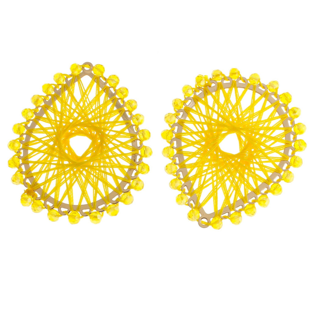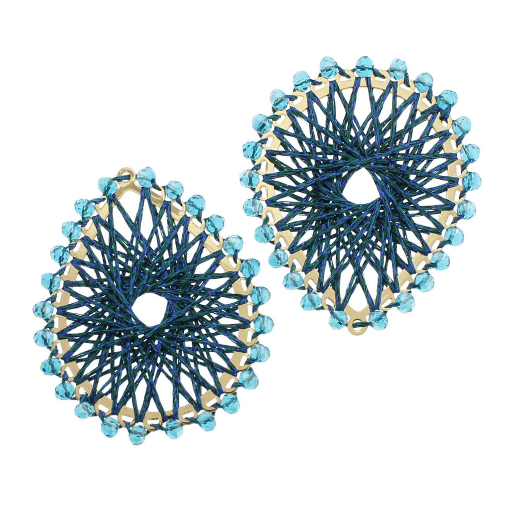 Take a look at these super detailed teardrop pendants. They are made with gold tone alloy that is wrapped with thread and finished with faceted electroplated beads. Available in black, blue, gold, grey, navy blue, red, turquoise, white, and yellow.