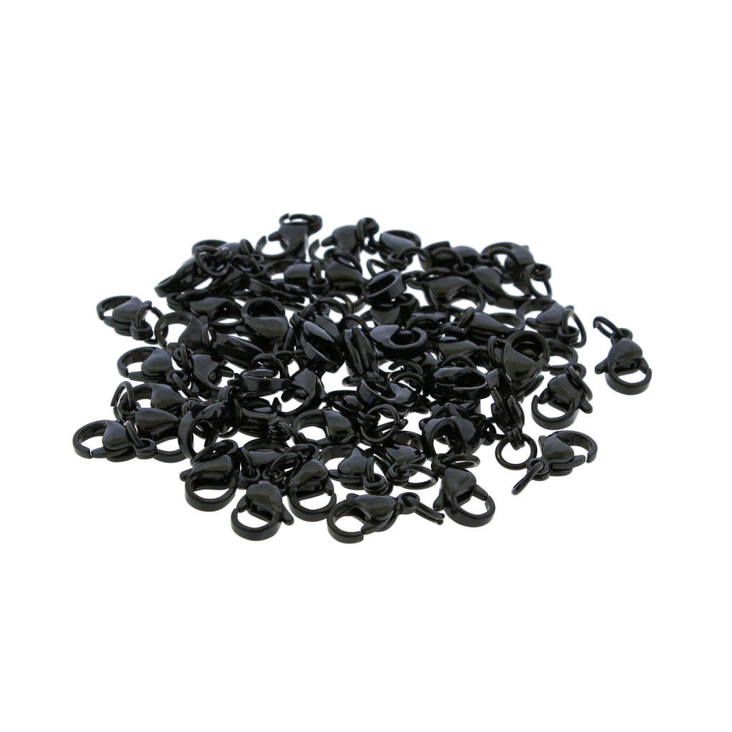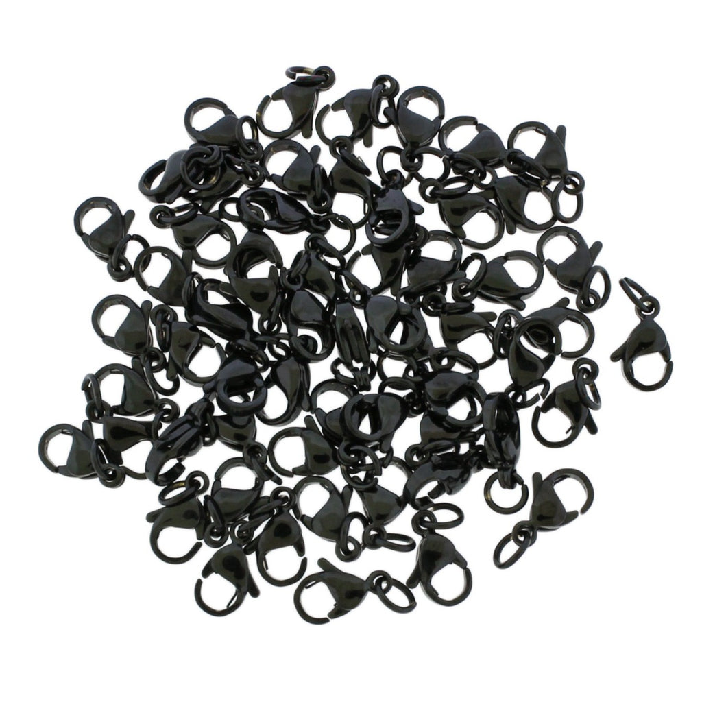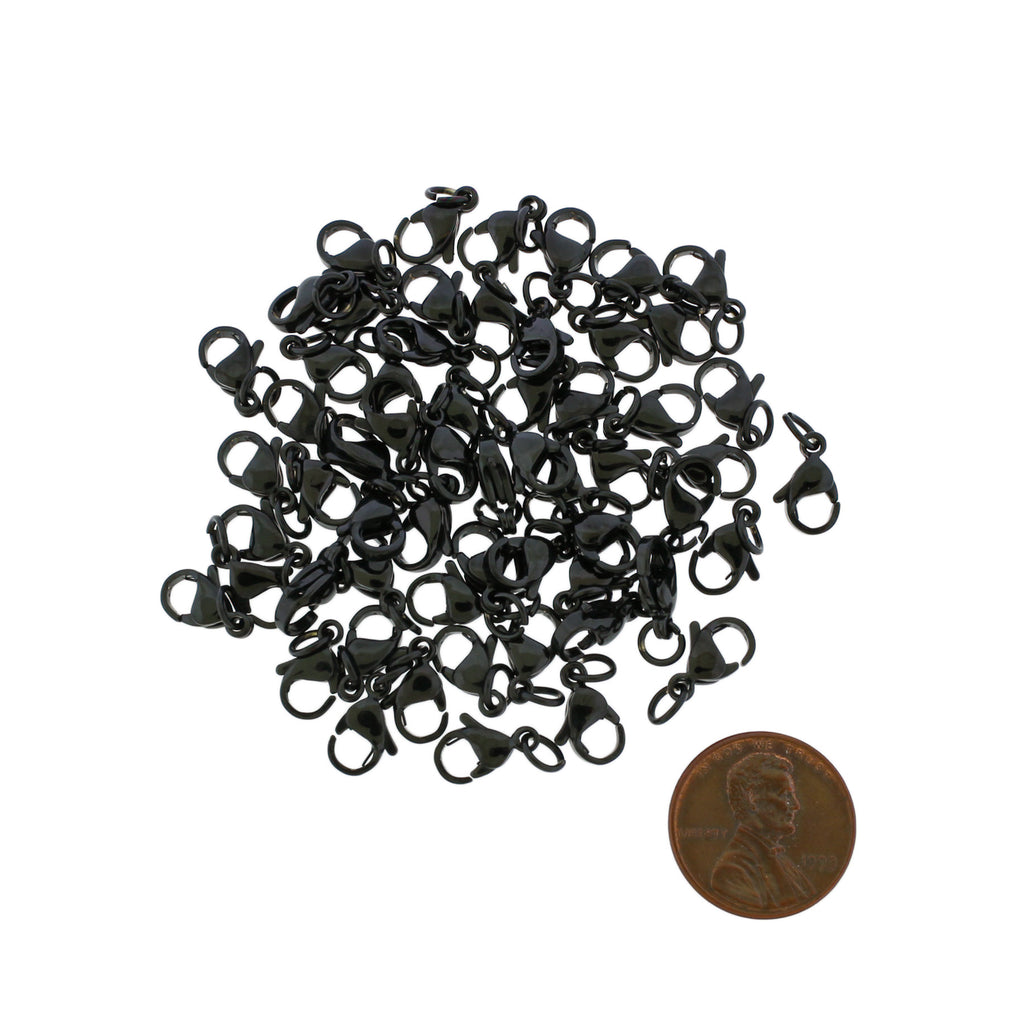 Black lobster claw clasps with attached jump ring in 304 stainless steel, an absolute staple for any jewelry making project!