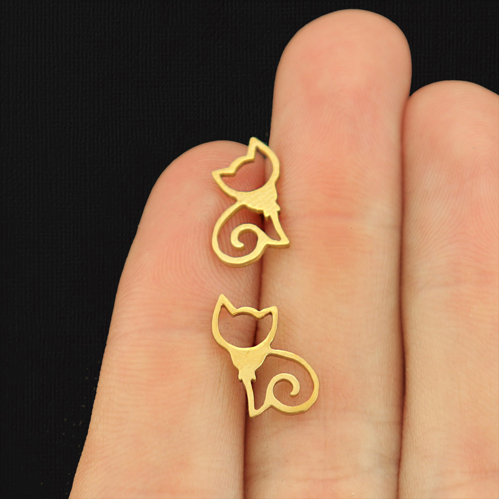 Silver or gold tone cat stud earrings in stainless steel, perfect for a simple look!