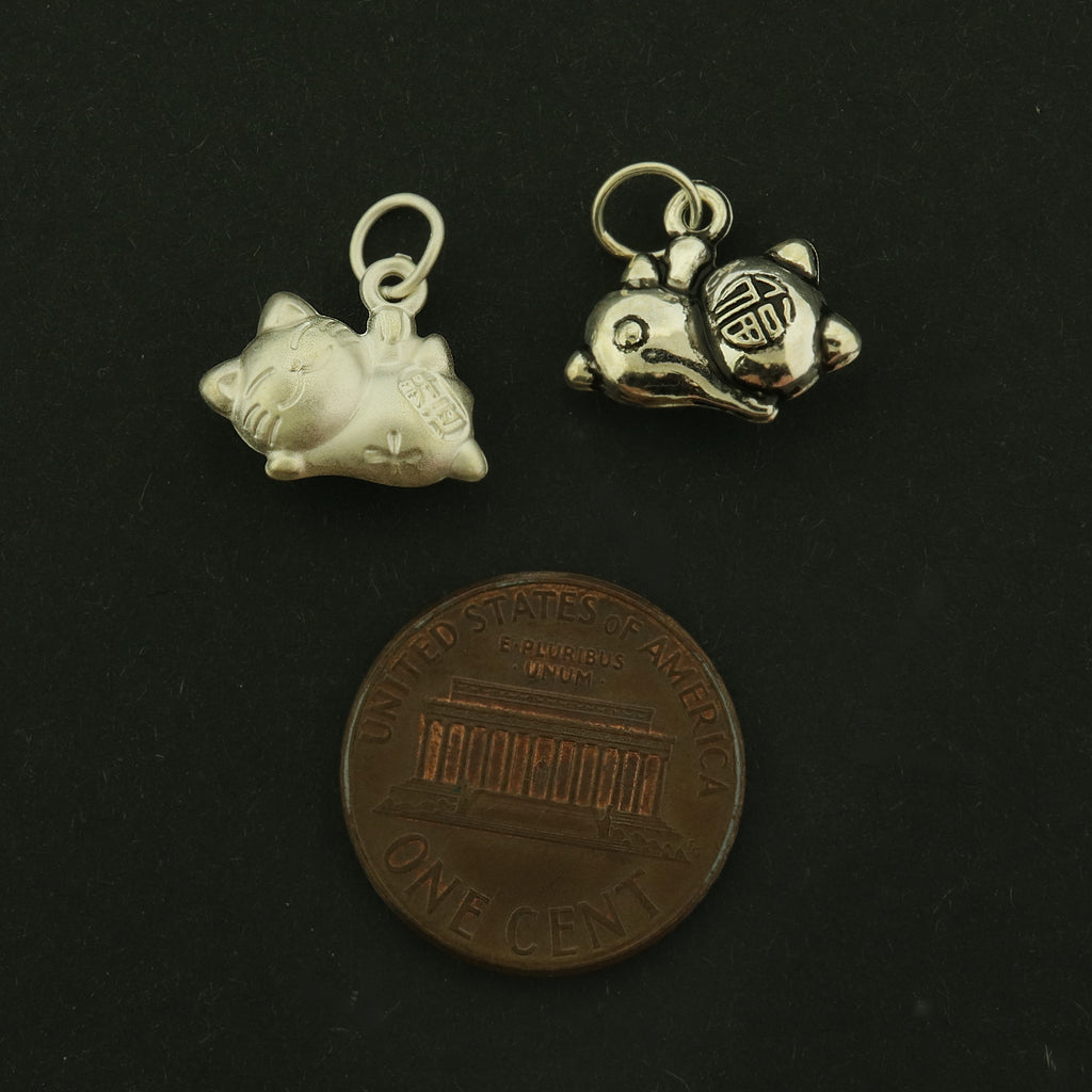 Check out these super cute laying down cat sterling silver charms. Available in either silver or antique silver, they are very eye catching. They even include an attached jump ring!