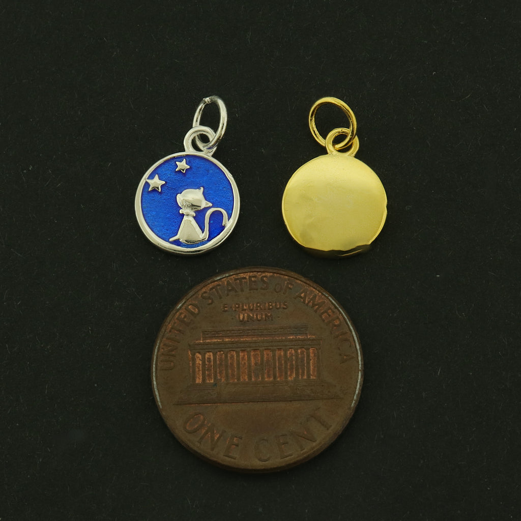 Check out these super cute cat sterling silver charms... they depict a cat gazing up at the stars. Includes blue enamel coloring to make it pop! Available in either silver or gold tone, they are very eye catching. They even include an attached jump ring!