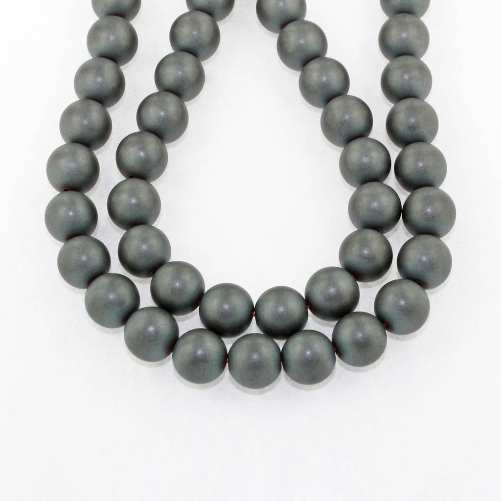 Dark grey synthetic (non magnetic) hematite beads in a 8mm round, with a matte finish.