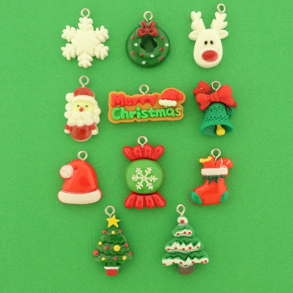 Christmas themed collection of resin charms with a zinc alloy silver loop attached.