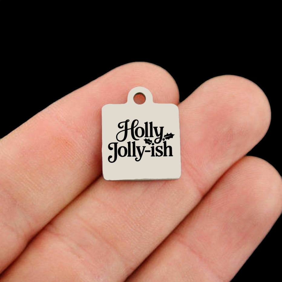 Holly Jolly-ish laser engraved stainless steel square charms, from our exclusive line designed by Bohemian Findings.