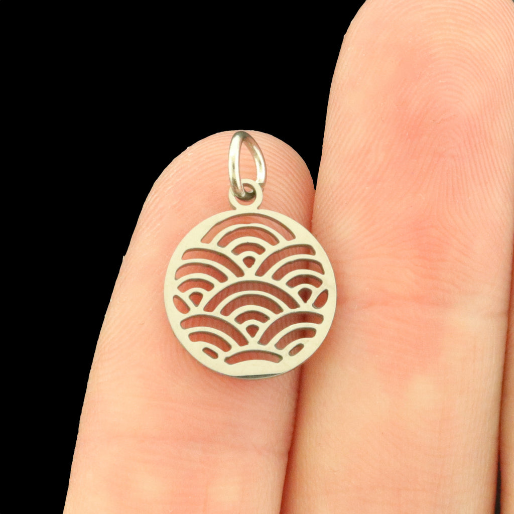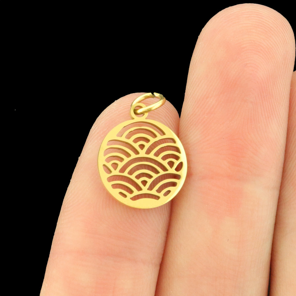Take a look at these stainless steel round cutout circle rainbow charms, available in silver or gold. Comes with attached jump ring too!
