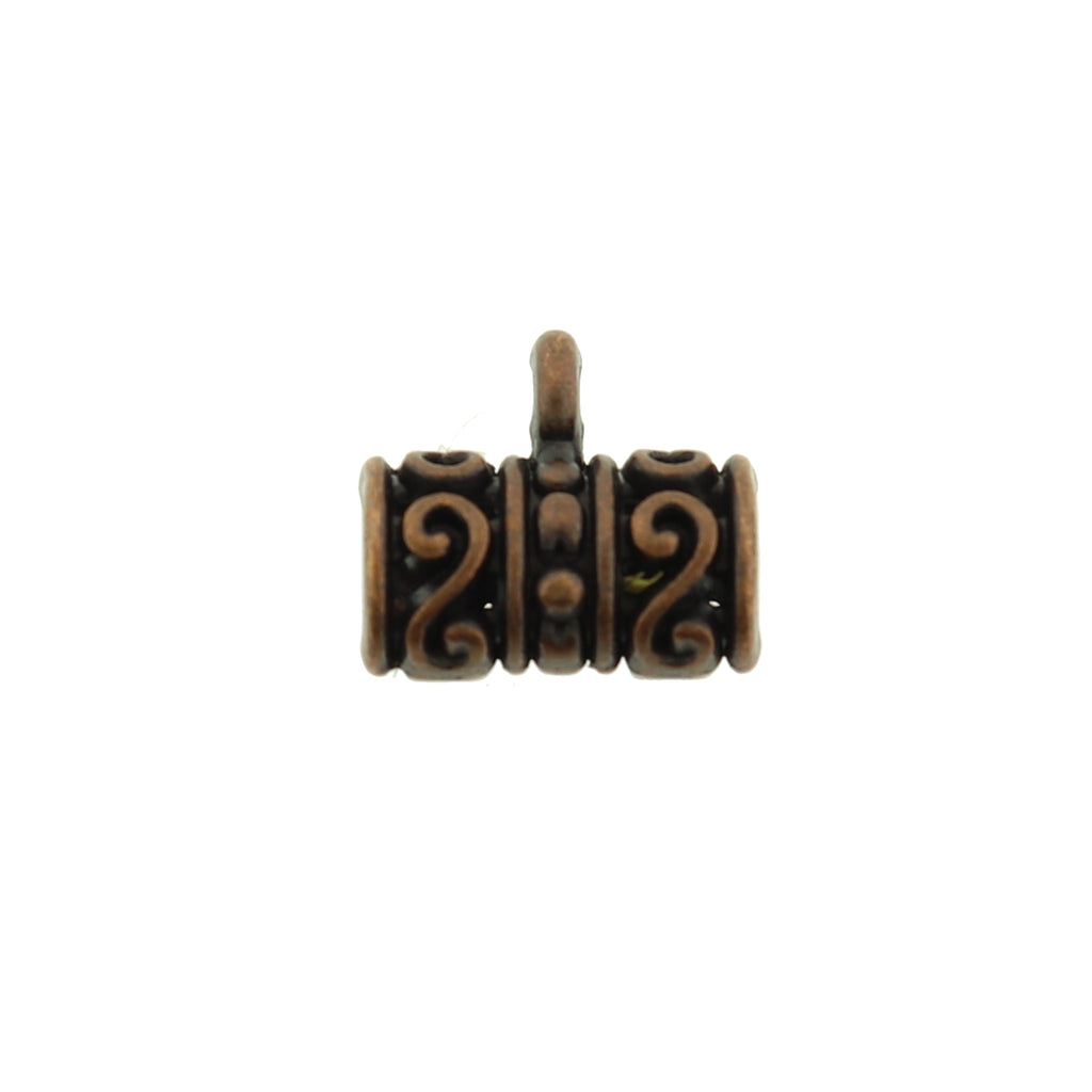 Antique copper tone zinc alloy metal beads in a 12mm x 13mm bail, with a metallic finish.
