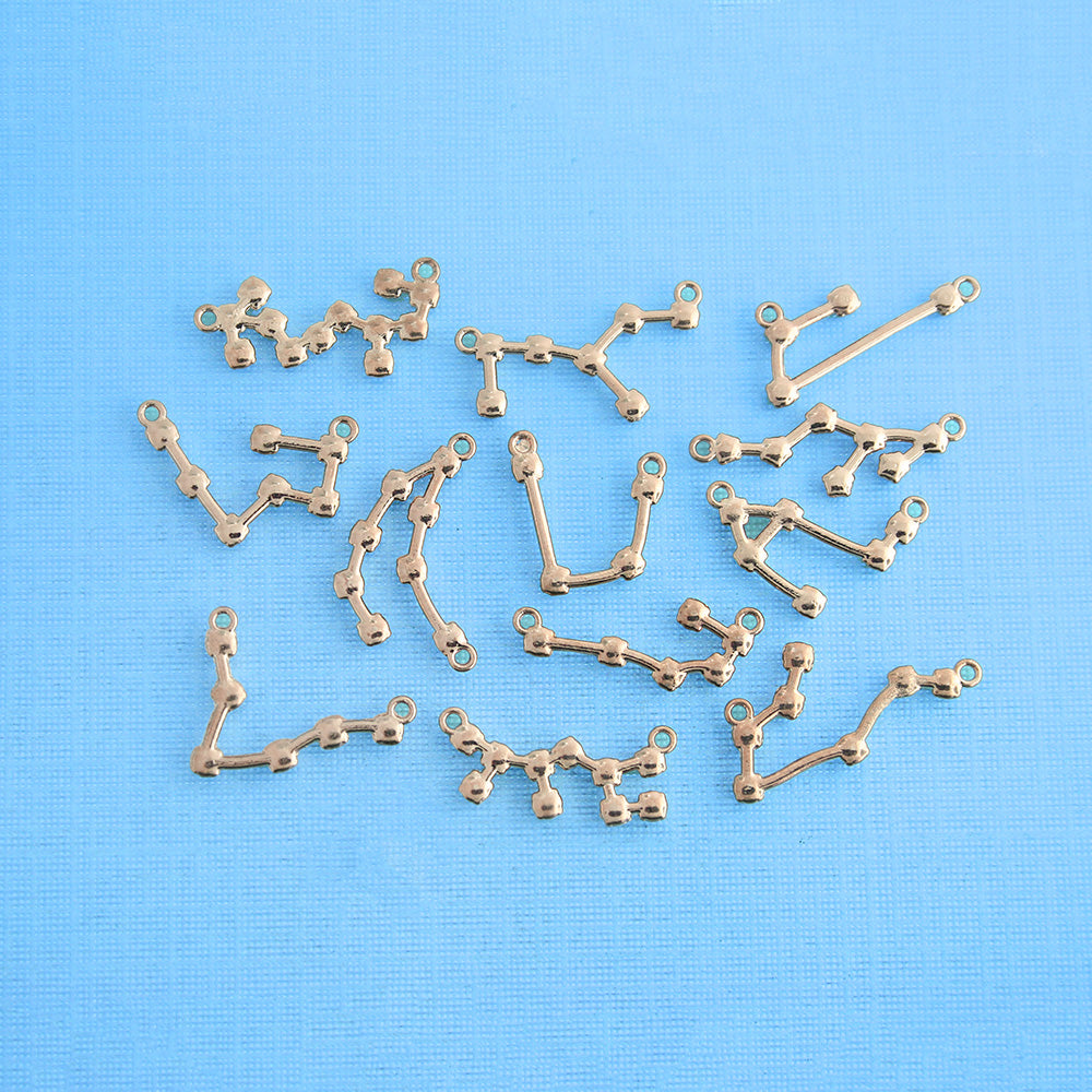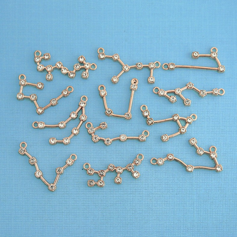 Constellation collection of gold tone connector charms with inset clear rhinestones, in a zinc alloy metal.
