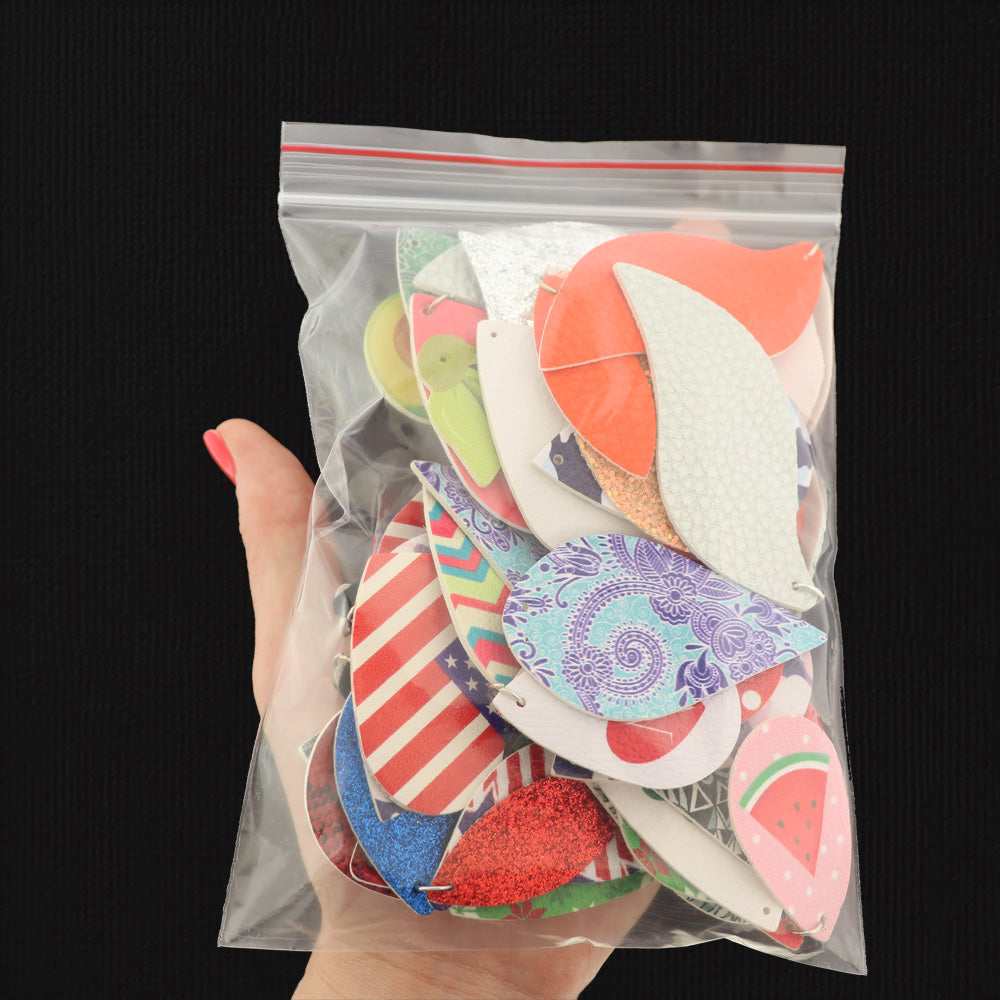 Each bag will include pairs of pendants, perfect for earrings! These unique bags will include different colors and styles of leather pendants.. Check out the second and third photo to see the variety! Each bag will be different, with all leather pendants useable in great shape.