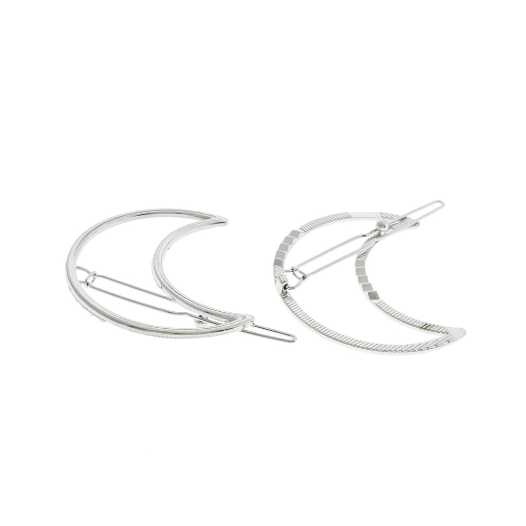 Crescent moon silver tone hair clips in zinc alloy, the perfect base for your next hair accessory creation!