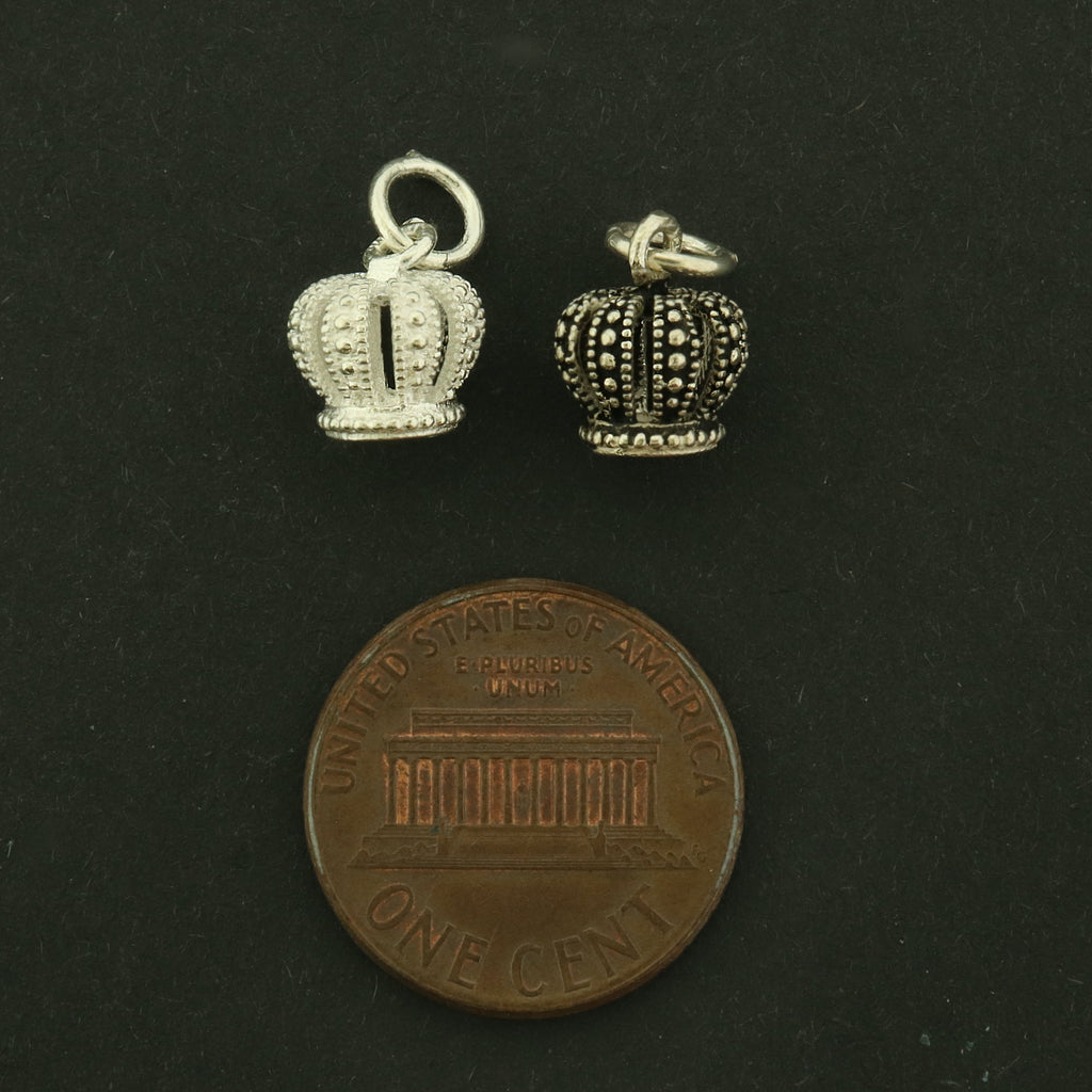 Check out these beautiful 3D crown charms.. made of 925 sterling silver, and include an attached jump ring. Choose from a silver or antique silver tone finish!
