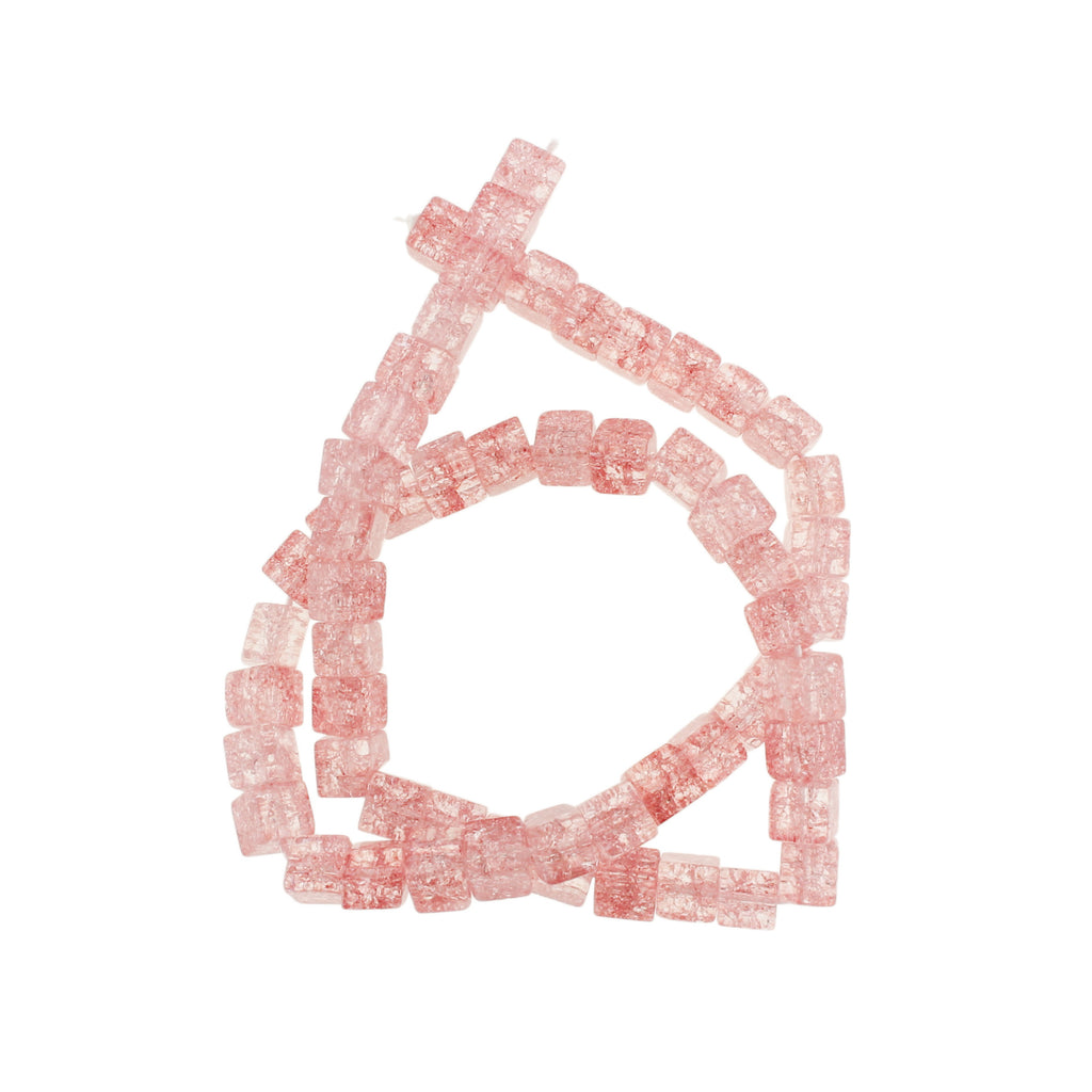 Red crackle glass beads in a 6mm cube, with a polished finish.