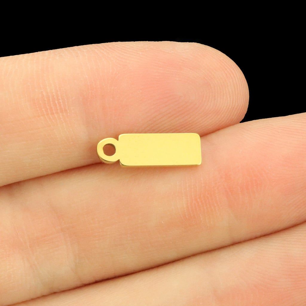 Create your own personal stainless steel charms, customized to suit your creative needs! These charms will be laser engraved with your own phrase. Available in silver or gold tone!