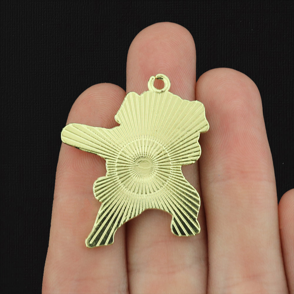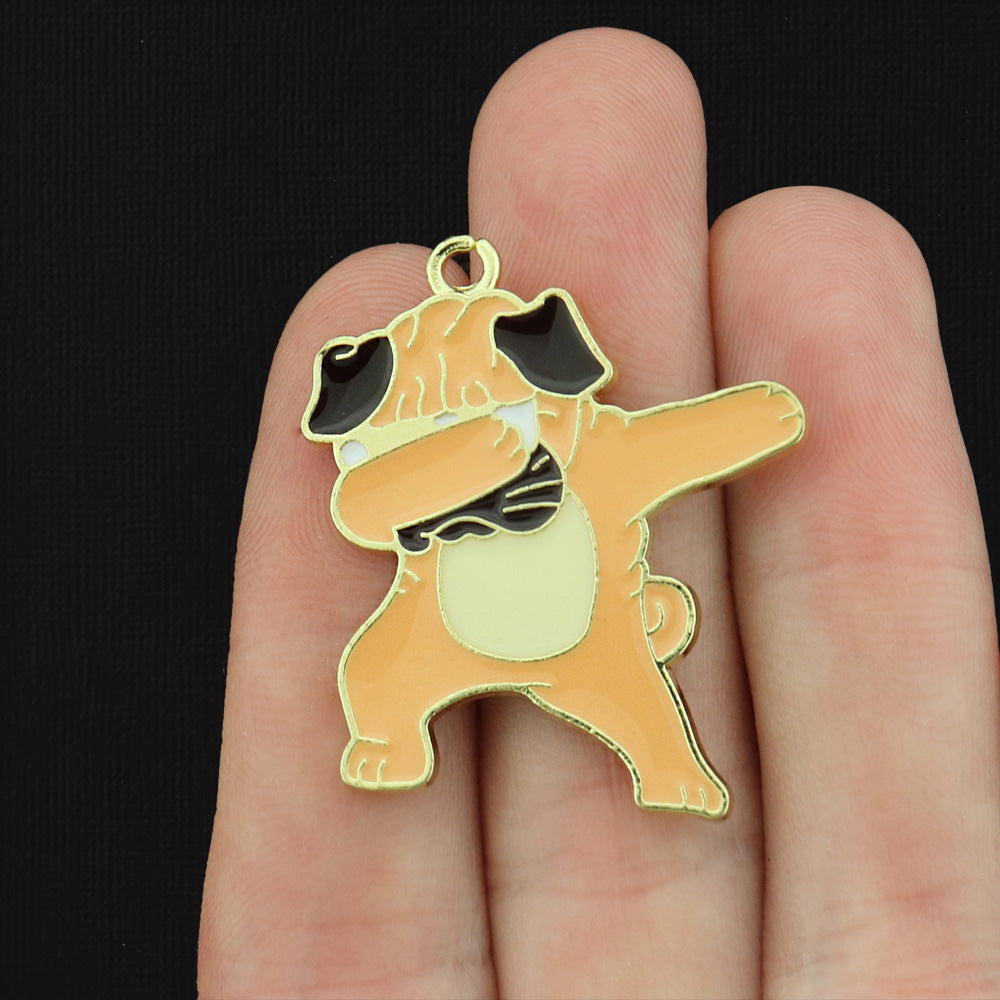 Dabbing brown dog gold tone charms, in a zinc alloy metal and enamel.