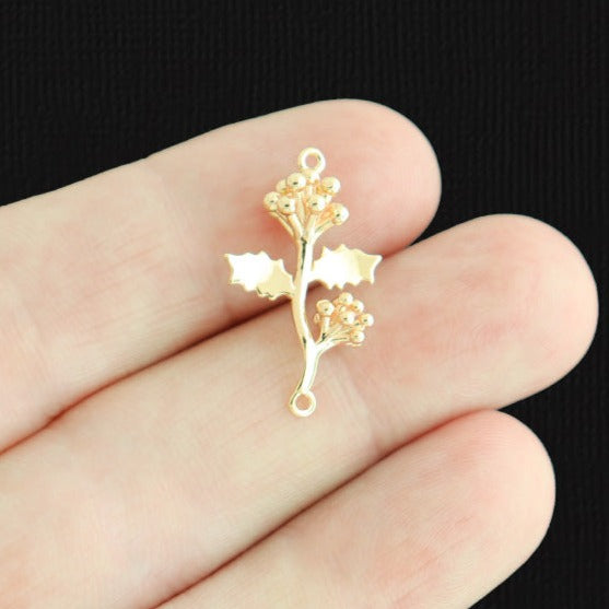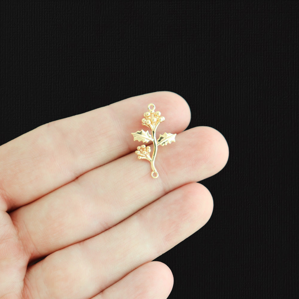 December holly flower gold tone charms, in a plated copper.