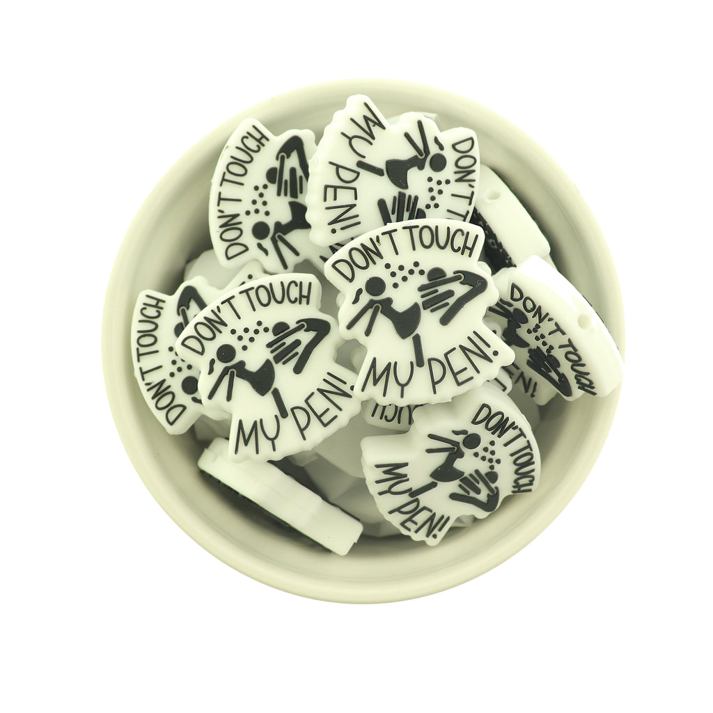Check out these unique "Don't Touch My Pen" focal beads! Perfect for someone who is a constant victim of pen theft!