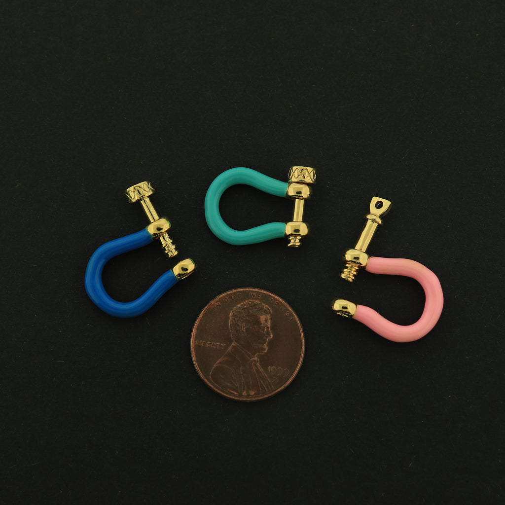 Check out these super cute horseshoe shaped enamel coated carabiner clasps... with an 18k gold plated screw closure! Available in hot pink, sky blue, turquoise, pink, yellow, blue, dark blue, purple, green, red, light orange, white, orange and light green!