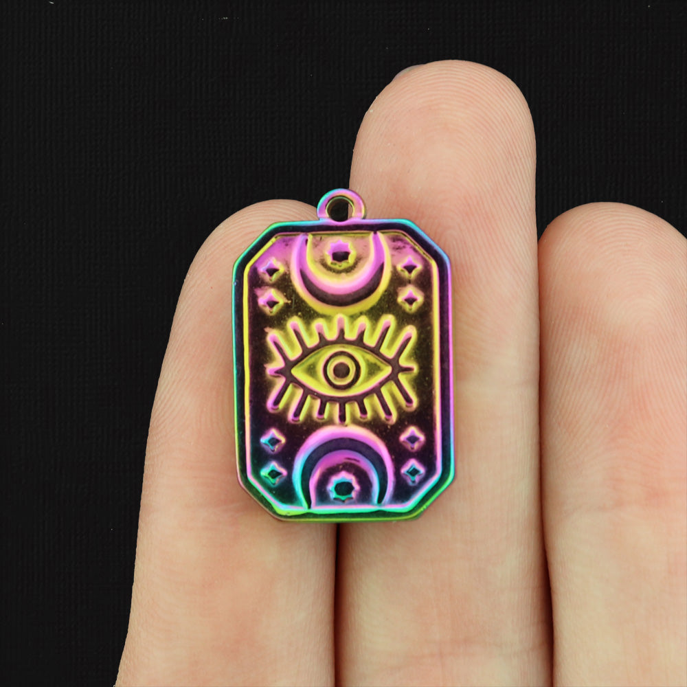 Eye of Providence silver or rainbow electroplated tone charms with eye and crescent moon design, in 304 stainless steel.