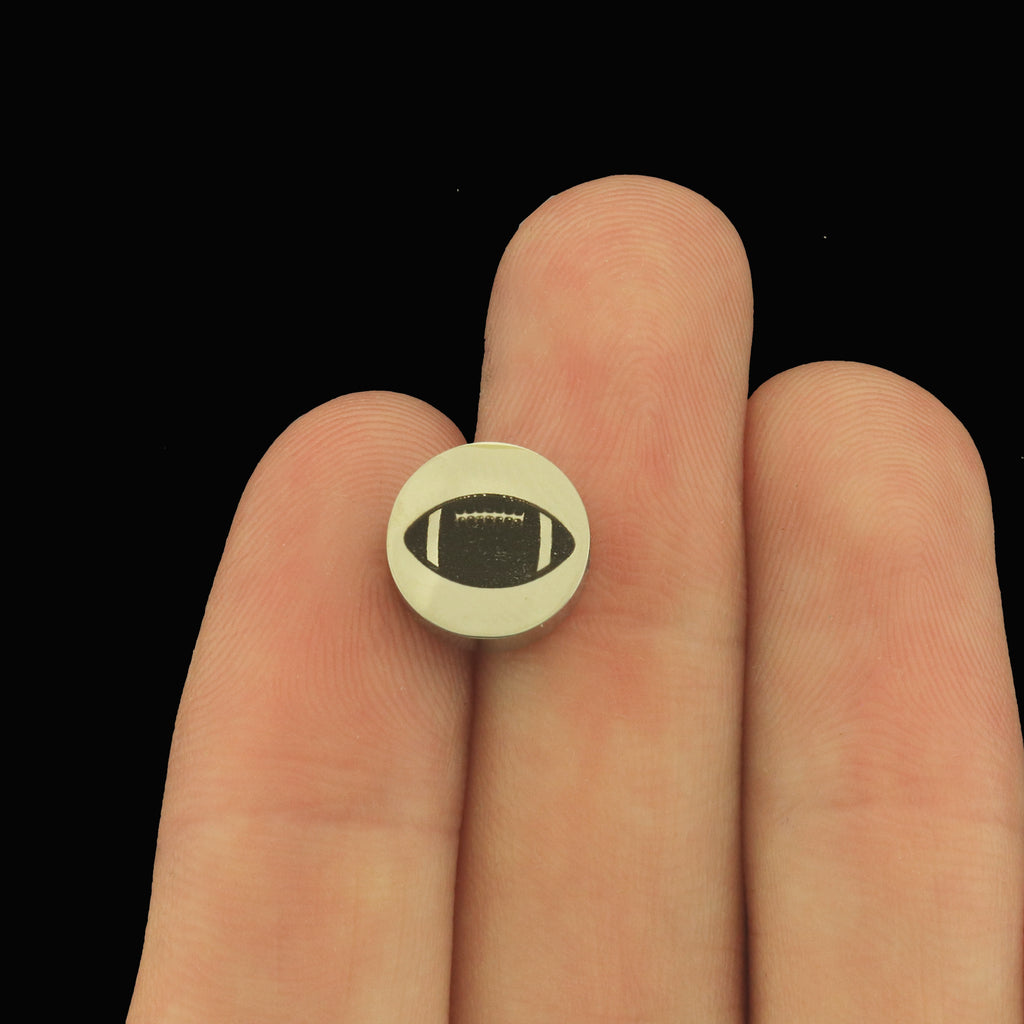 Football laser engraved stainless steel beads. Choose from three sizes - 6mm, 8mm, or 10mm! Perfect to add a personalized touch to a beaded bracelet.