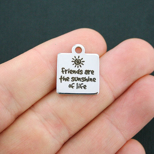 "Friends are the sunshine of life" laser engraved stainless steel square charms with a sun image, from our exclusive line designed by Bohemian Findings.