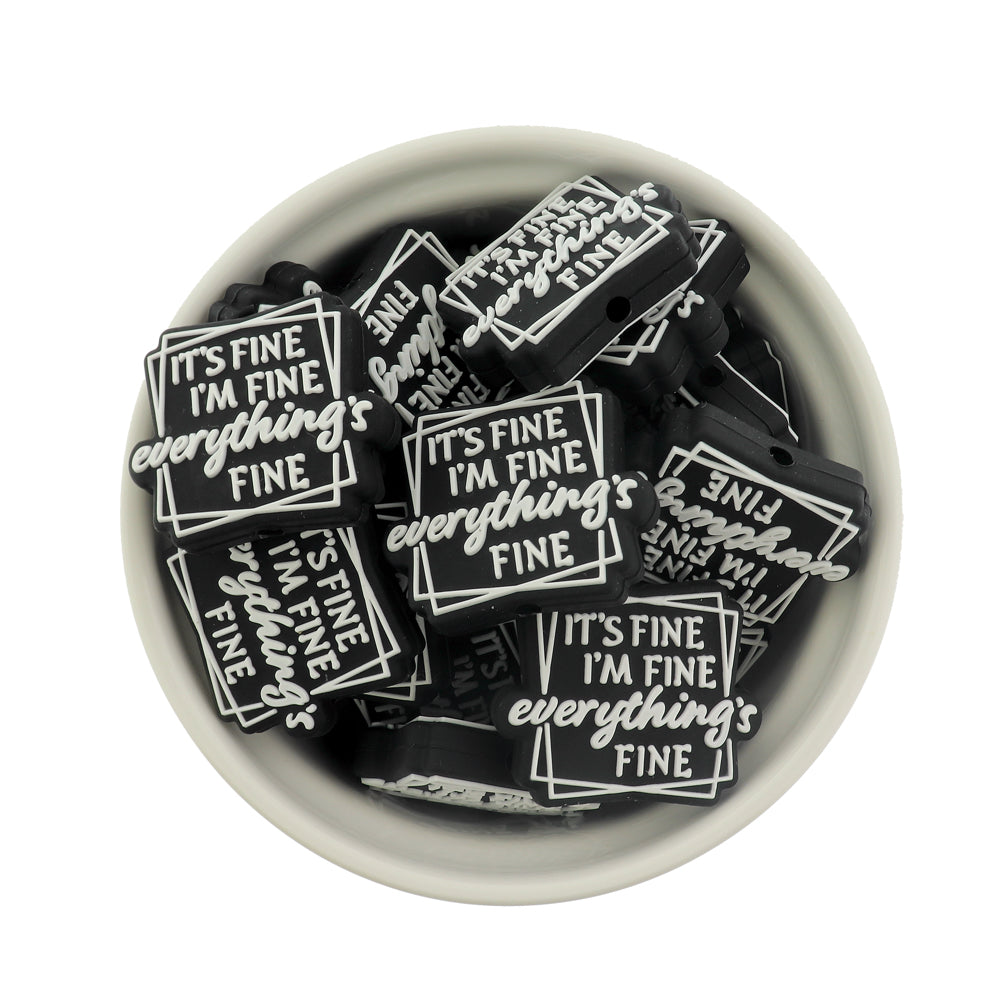 Funny Silicone Focal Beads - It's fine, I'm fine, everything's fine - 5 Beads - BDS047