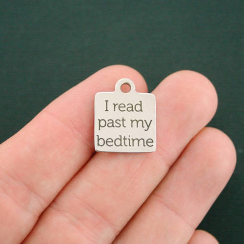 "I read past my bedtime" laser engraved stainless steel square charms, from our exclusive line designed by Bohemian Findings.