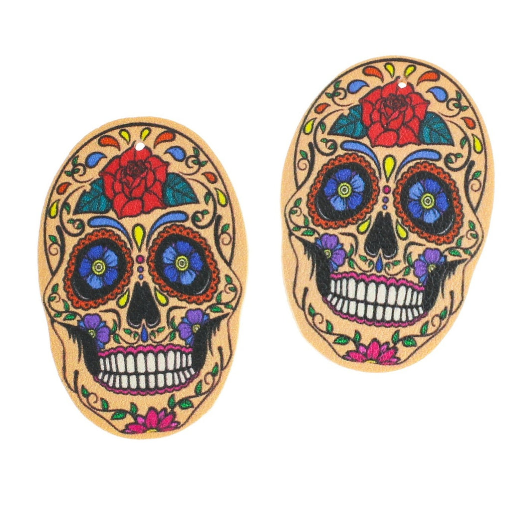 Rose flower skull oval pendants, in imitation leather. Available in red, multicolor (USA stripes and stars colors), and yellow!