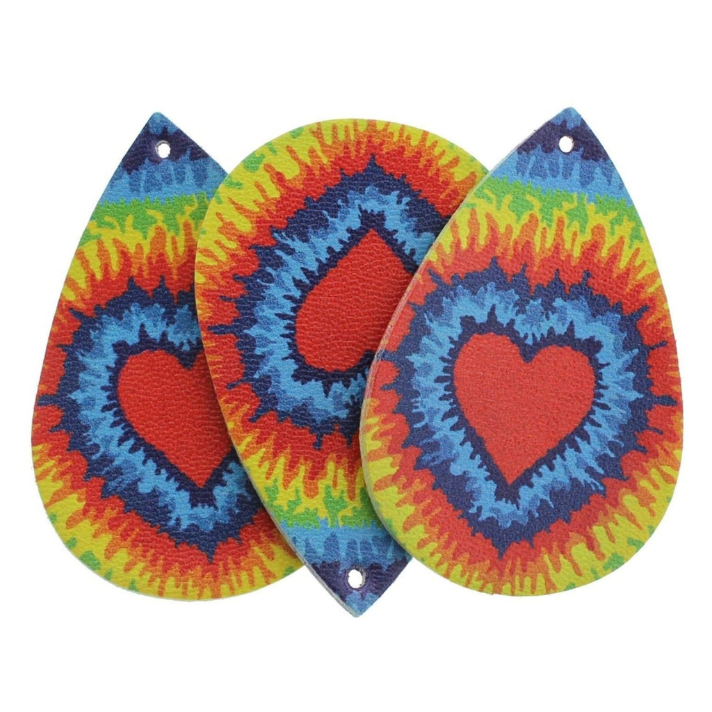 Rainbow tiedye pattern teardrop pendants, in imitation leather.