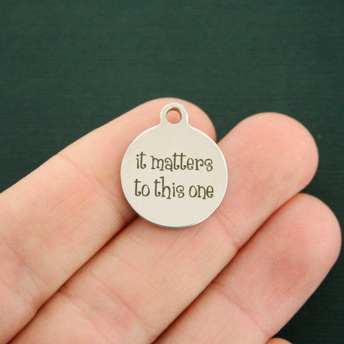 "It matters to this one" laser engraved stainless steel round charms, from our exclusive line designed by Bohemian Findings.