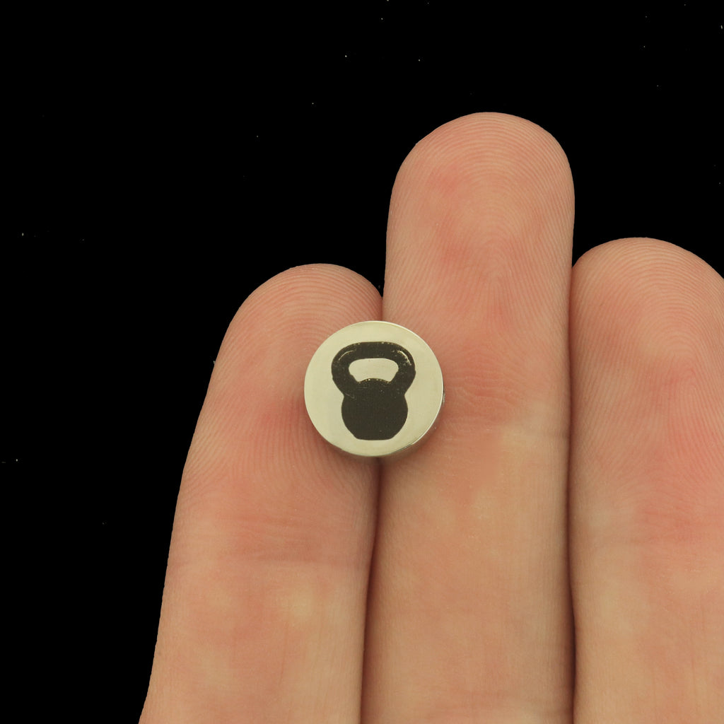Kettle Bell laser engraved stainless steel beads. Choose from three sizes - 6mm, 8mm, or 10mm! Perfect to add a personalized touch to a beaded bracelet.